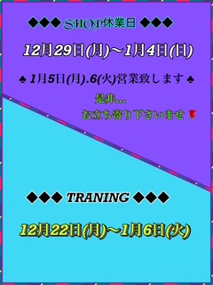 [ SHOP ] [ 加圧トレーニング]を下記の日程で休業とさせていただきます