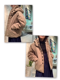 ボタンを留めても賑やかさのある中綿ブルゾンです…💓